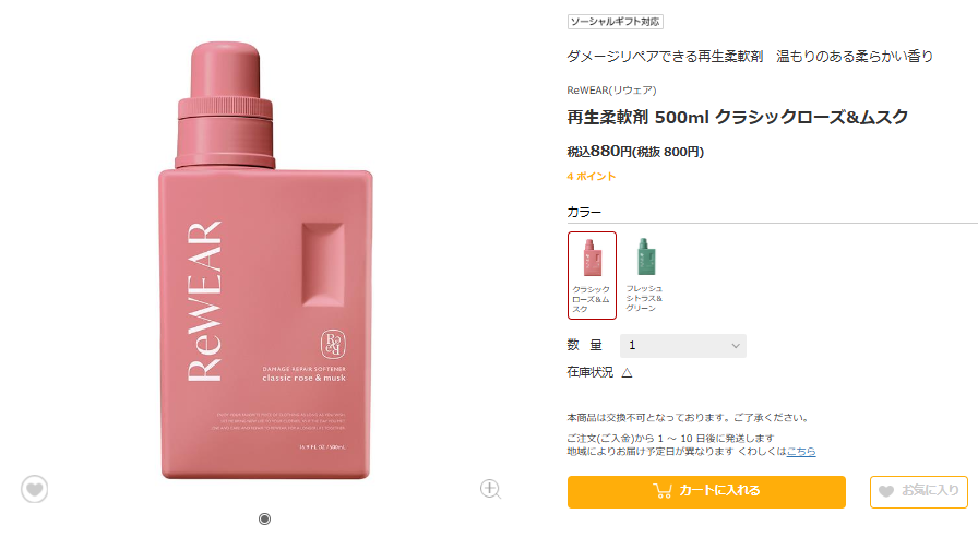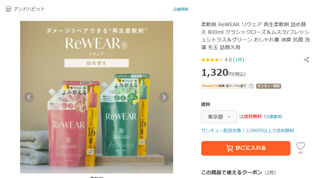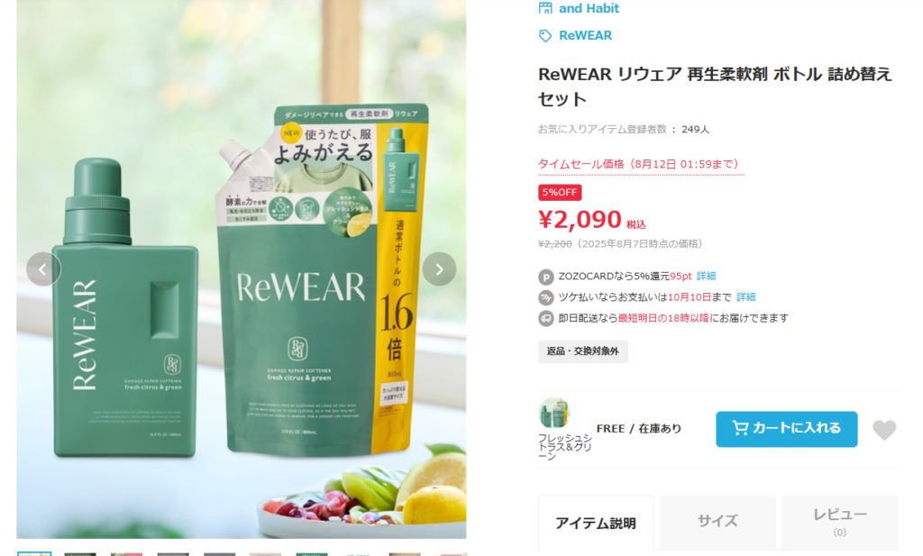 ZOZOTOWN(ゾゾタウン)にも、リウェア柔軟剤が売っています。