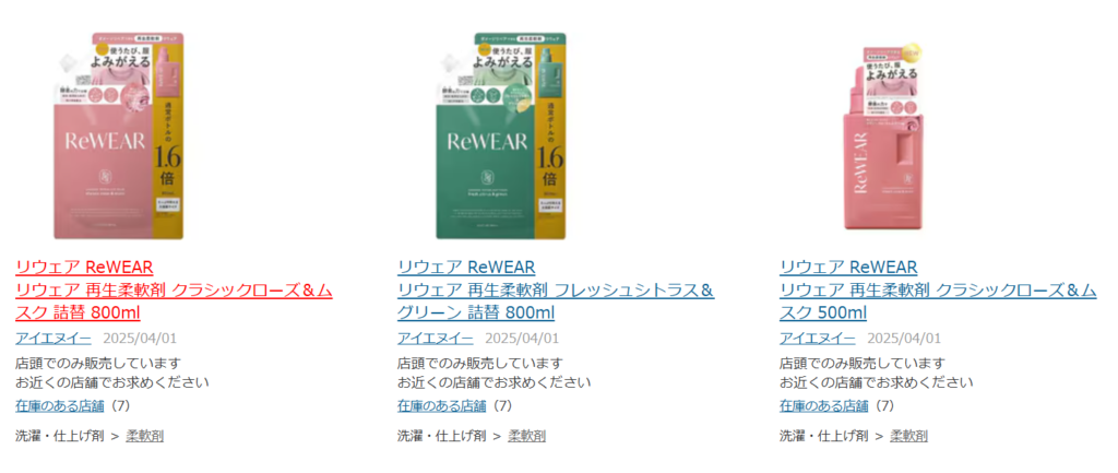また、マツキヨを調査したところリウェア柔軟剤が売っているのを発見しました。