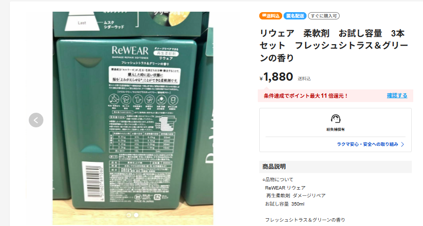 また、楽天ラクマにもリウェア柔軟剤が売っているのを発見しました!