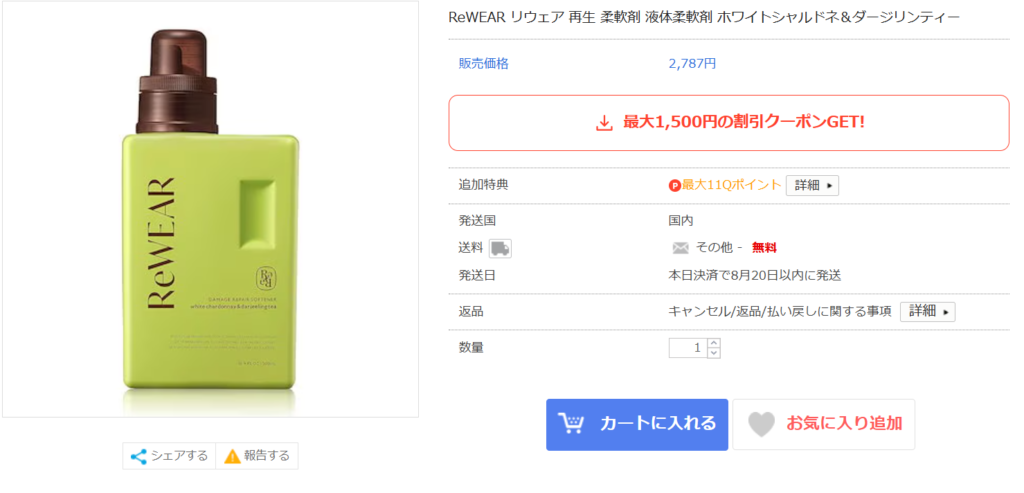 Qoo10にも、リウェア柔軟剤が売っていました!