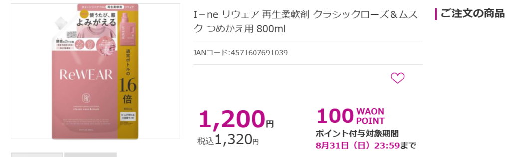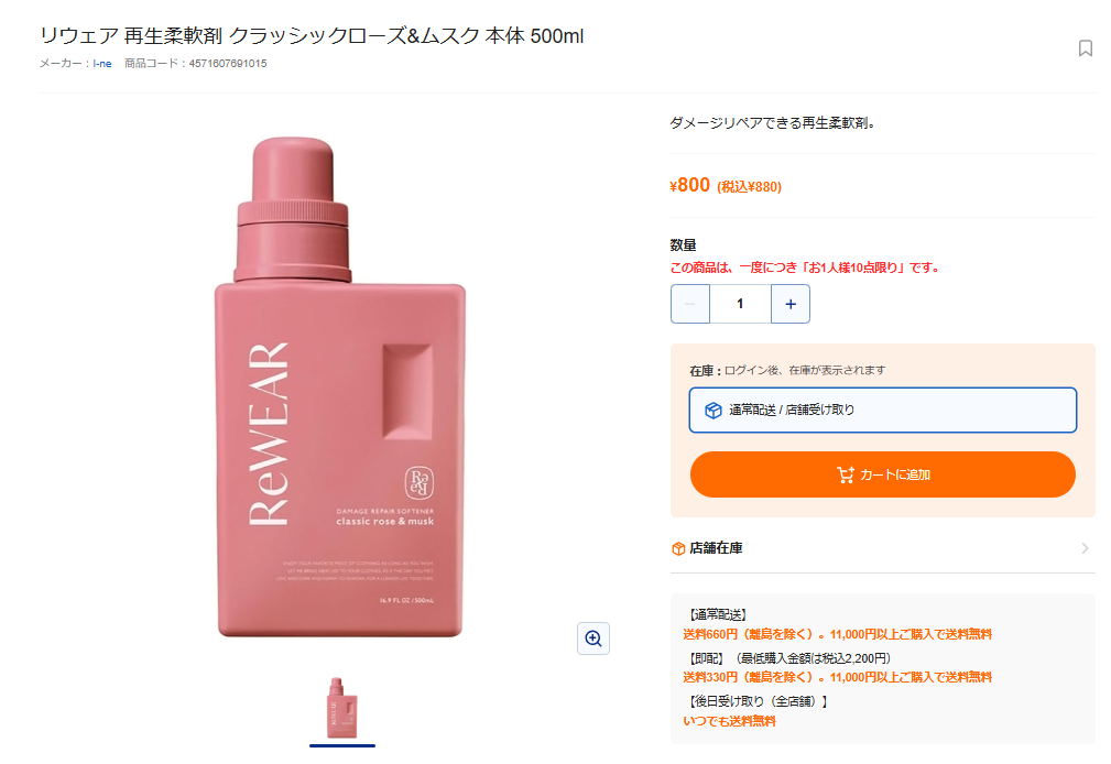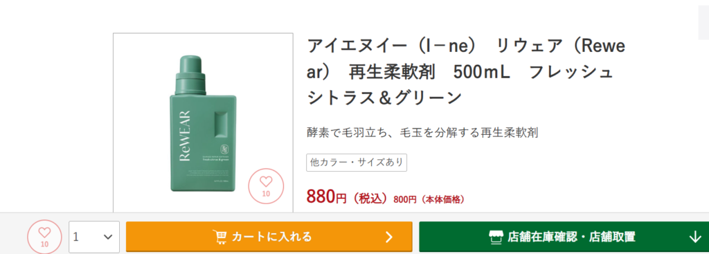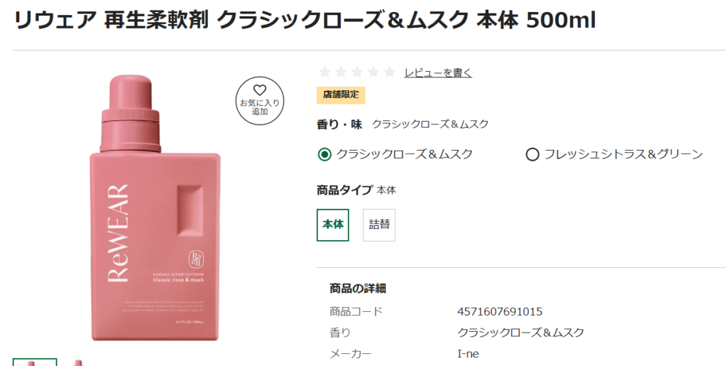 LOHACO(ロハコ)に、リウェア柔軟剤が売っていました!