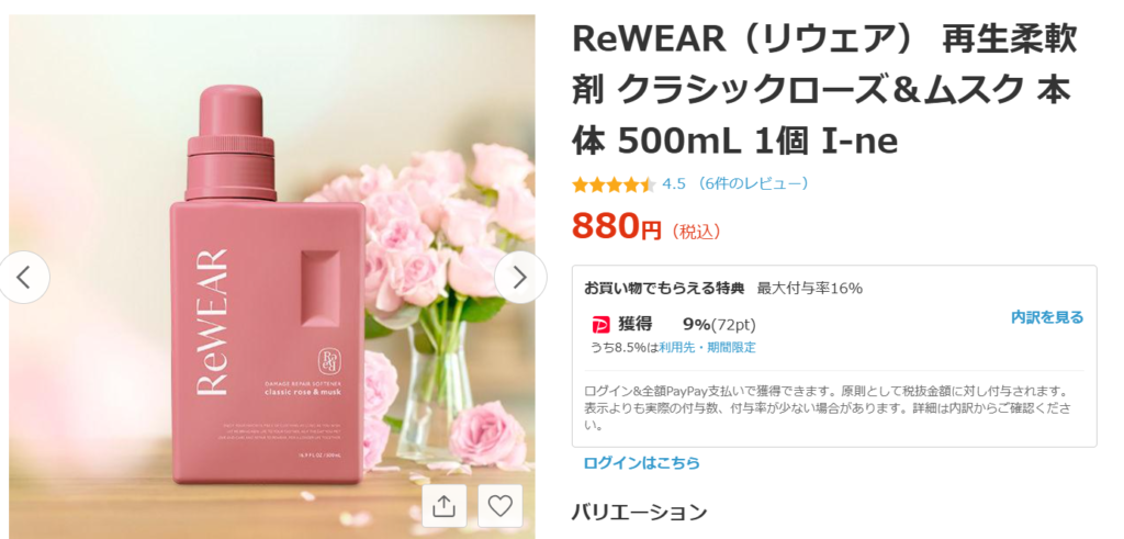 Yahoo!ショッピングにも、リウェア柔軟剤が売っていました。