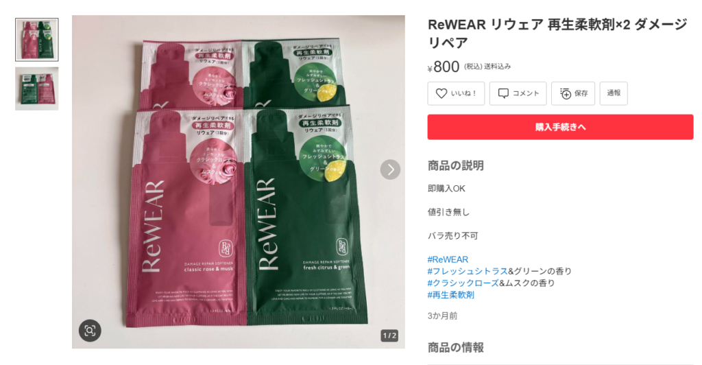 Yahoo!フリマにも、リウェア柔軟剤が売っていました!