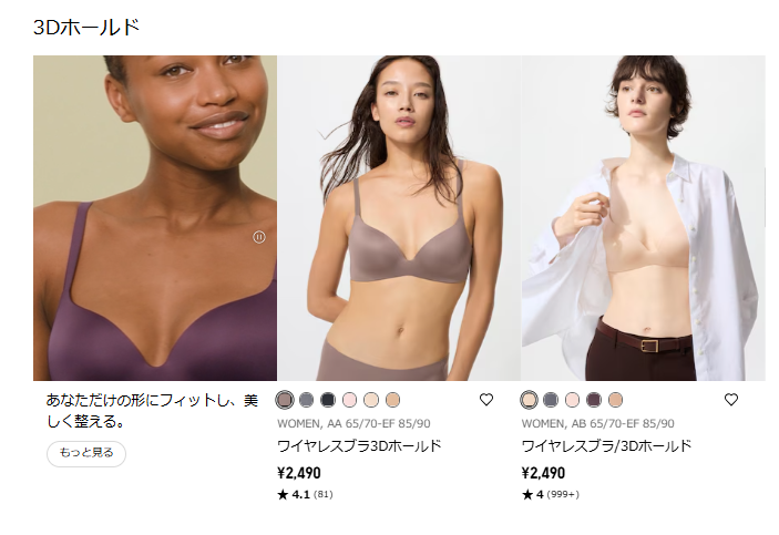 ユニクロにも、20代向けのブラジャーが売っていました。