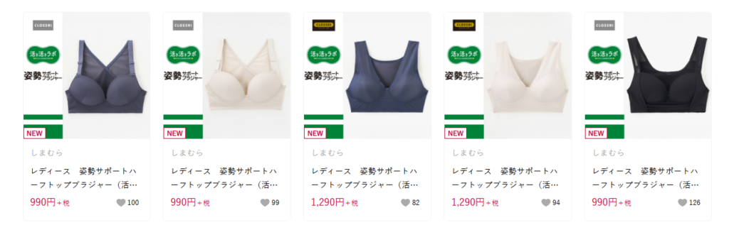 店舗の下着コーナーで、手頃な価格のブラが並んでおり、「とりあえず一枚欲しい」「まず試してみたい」という人にも選びやすいのが特徴です。