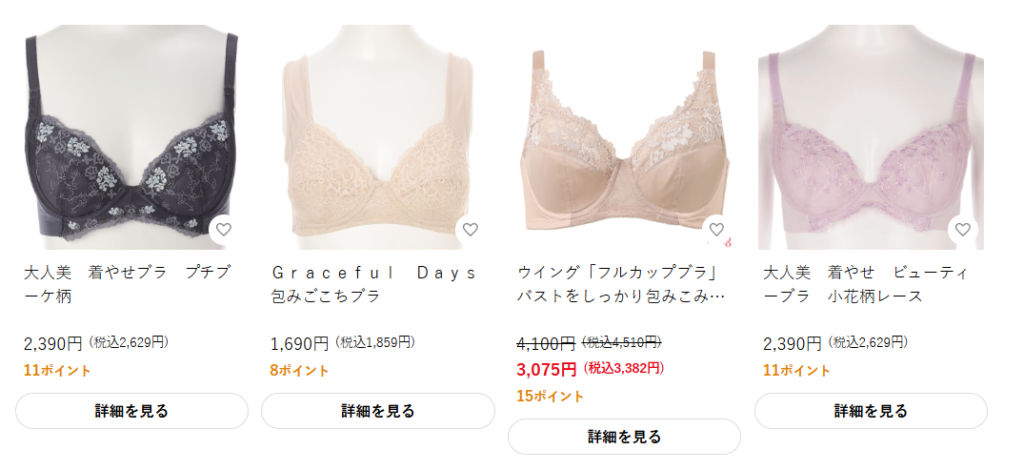 楽天市場でも、20代向けのブラジャーは種類豊富に買えます。