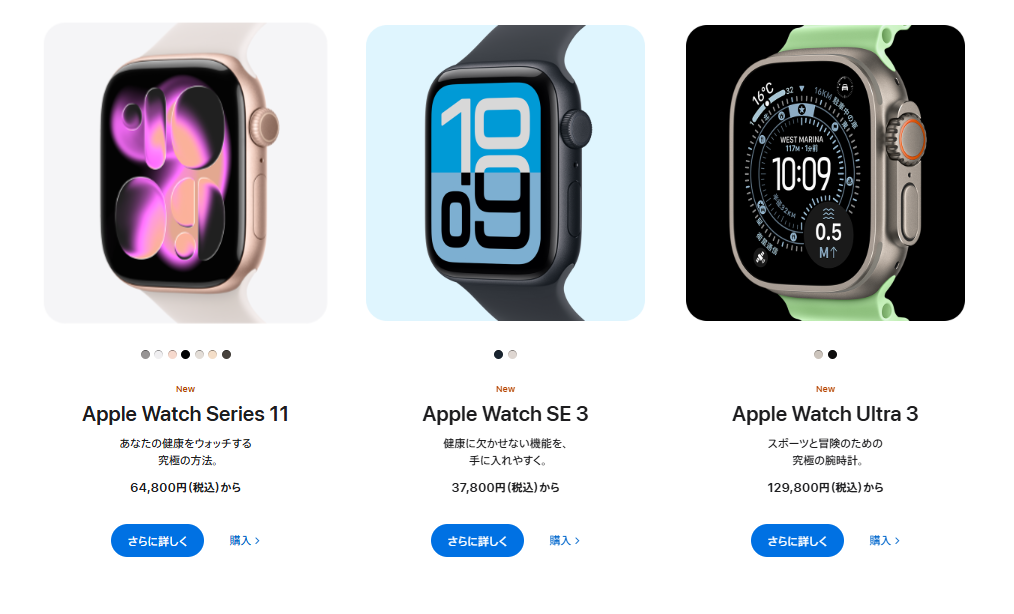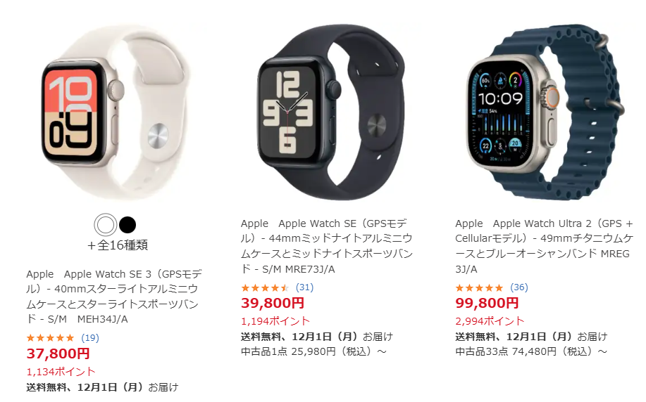 アップルウォッチを探しているなら、公式ストアはもちろん、楽天市場やAmazonといった通販サイト、大手家電量販店でも取り扱いが確認されています。