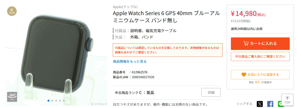 ただし、中古の場合はバンドがついていないなど、付属品が欠けている場合もあります。