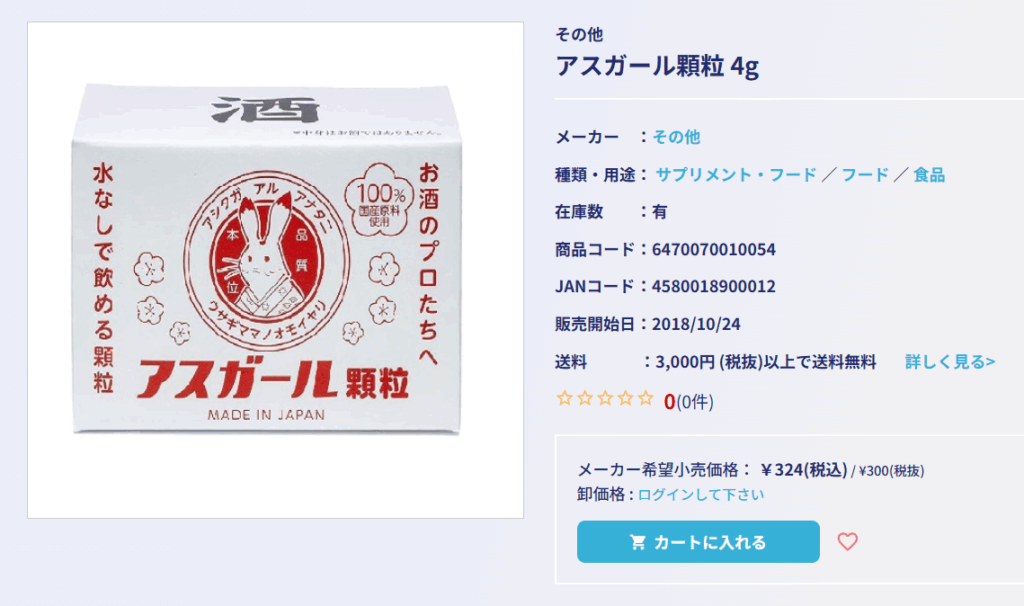 美容材料専門サイトに、アスガール顆粒が売っていました!