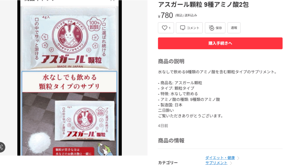 Yahoo!フリマにも、アスガール顆粒が売っていました!