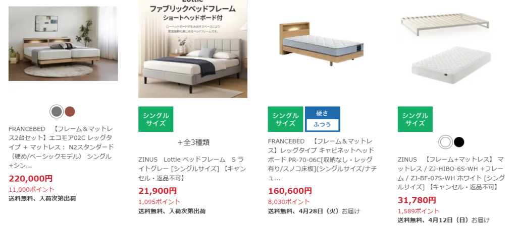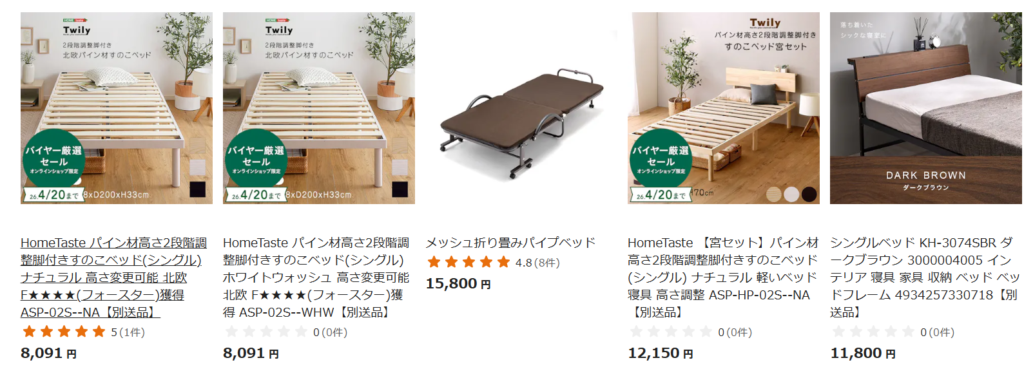 楽天市場にもベッドが売っていました!