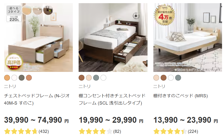 豊富な商品数の中から、自分の条件に合ったベッドを効率よく探せるのが魅力です。