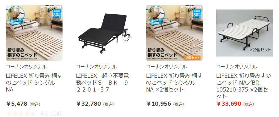 家電量販店のイメージが強いですが、実は家具やインテリア用品の取り扱いもあり、ベッドフレームや折りたたみタイプなどがそろっています。