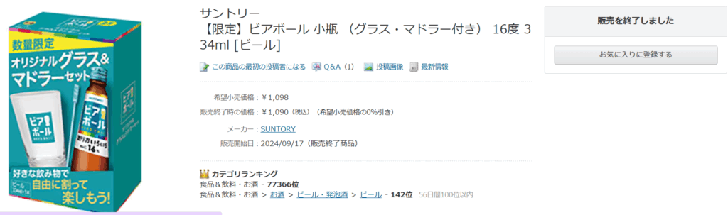 価格比較サイトや大型ECモールでは見つかるケースが多く、特にグラス付き記念セットは“数量限定”とされることもあります。