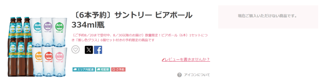 お酒のオンラインショップ「カクヤス」でも、過去にビアボールグラス付きが売っていたようです。