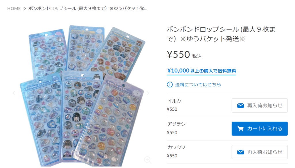 AQUAS Gift Shop / online storeにも、ボンボンドロップシールが売っていました。