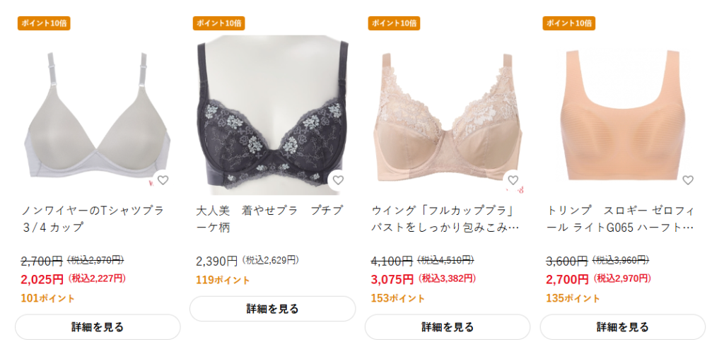 Yahoo!ショッピングにも、40代ブラジャーが売っていました。
