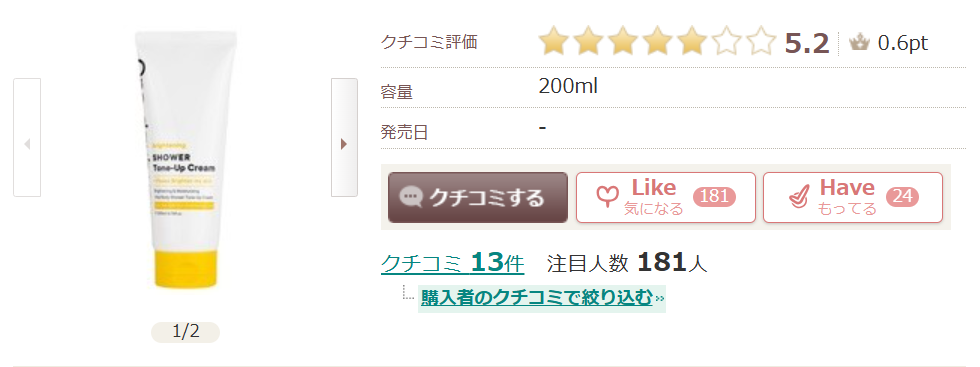 アットコスメでも、ブライトニングシャワートーンアップクリームの詳細情報は掲載されていますが、購入はできないようです。