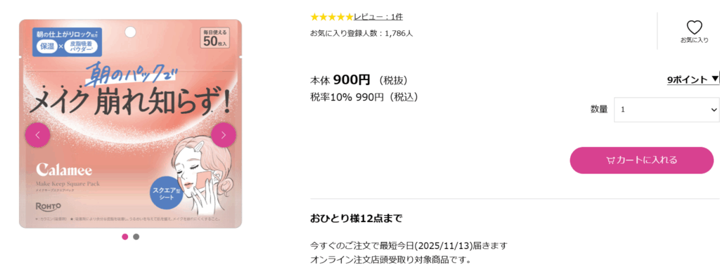 「Calamee メイクキープスクエアパック」の購入先を整理しました。