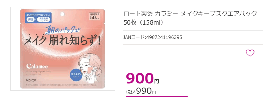 また、マツキヨを調べたとこr、カラミーメイクキープスクエアパックが売っているのを見つけました!