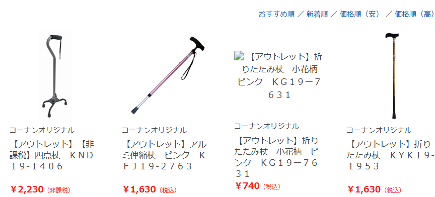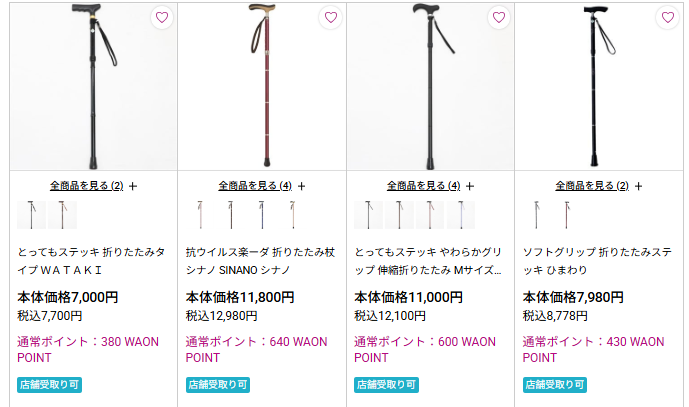 ドラッグストアでは、ウエルシアに杖が売っていました。
