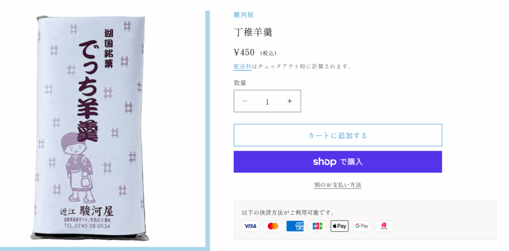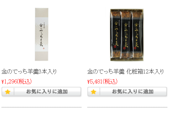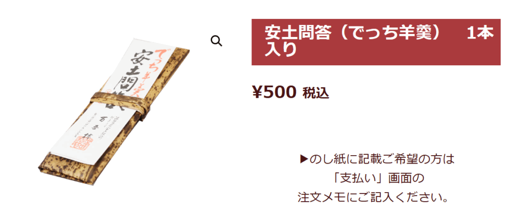 たかしままるごと百貨店では、オンラインで丁稚羊羹が売っています。