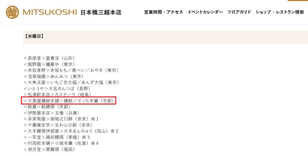 東京では、日本橋三越で丁稚羊羹の販売があります。