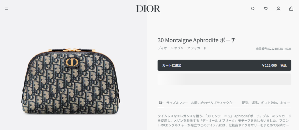 Dior公式ショップには、化粧ポーチが売っています。