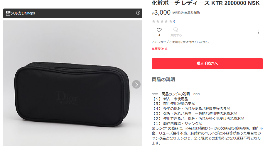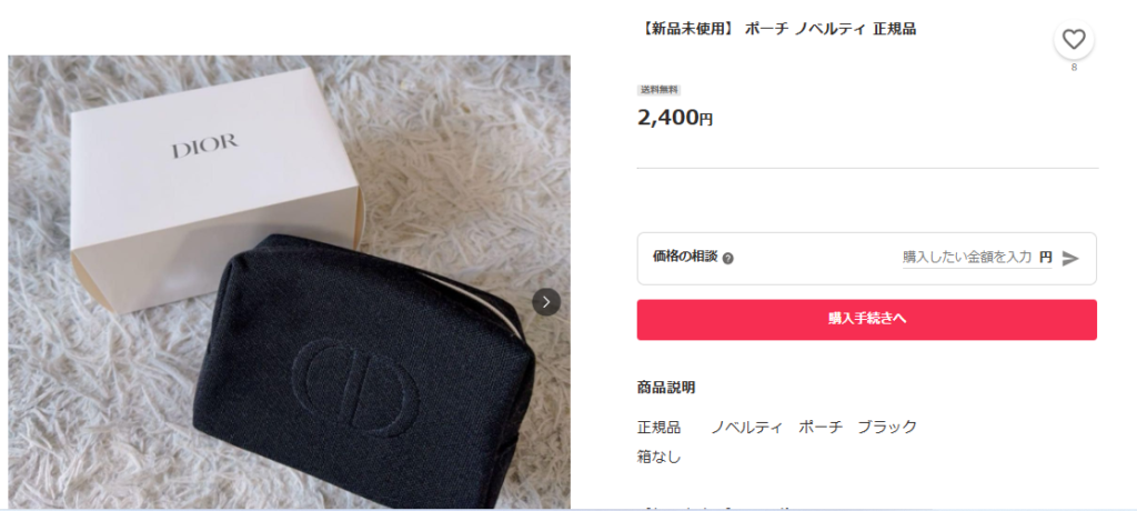 Yahoo!フリマにも、Diorの化粧ポーチが売っていました。