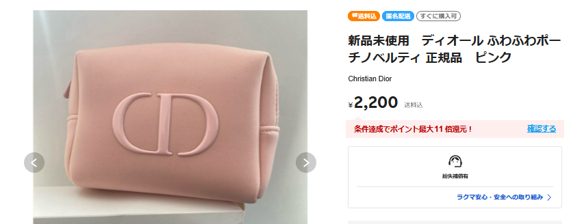 楽天ラクマにもDiorの化粧ポーチが売っていました!