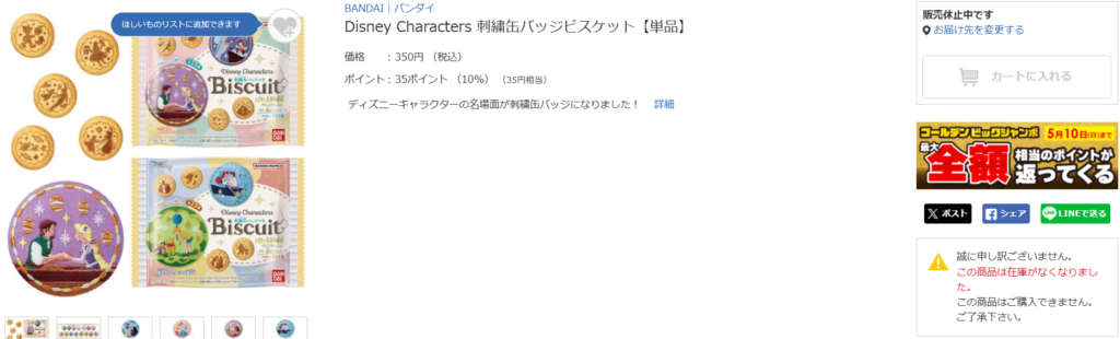 ビックカメラにも、ディズニー刺繡缶が売っていましたが、現在は販売休止中です。