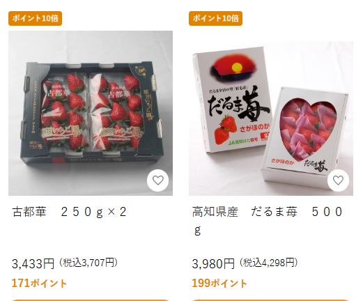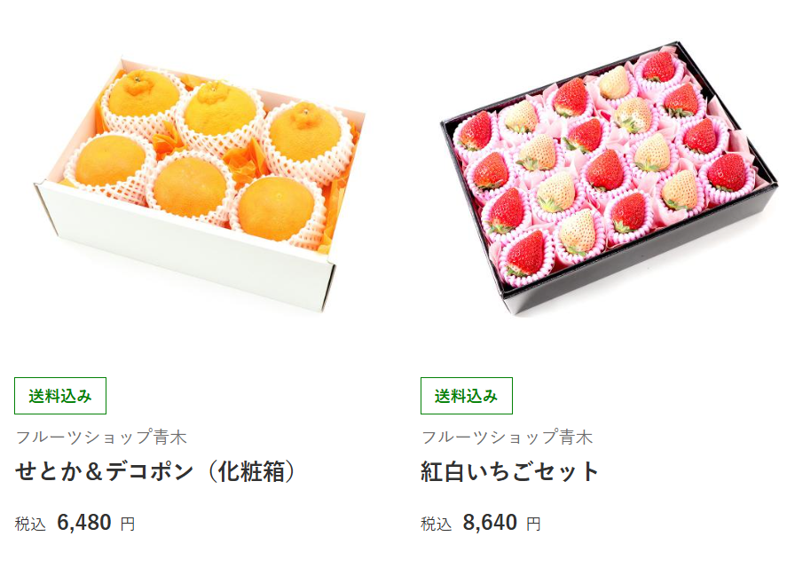 旬の果物詰め合わせや化粧箱入りの商品が豊富で、レビューや産地情報を見ながら選べるのが便利です。