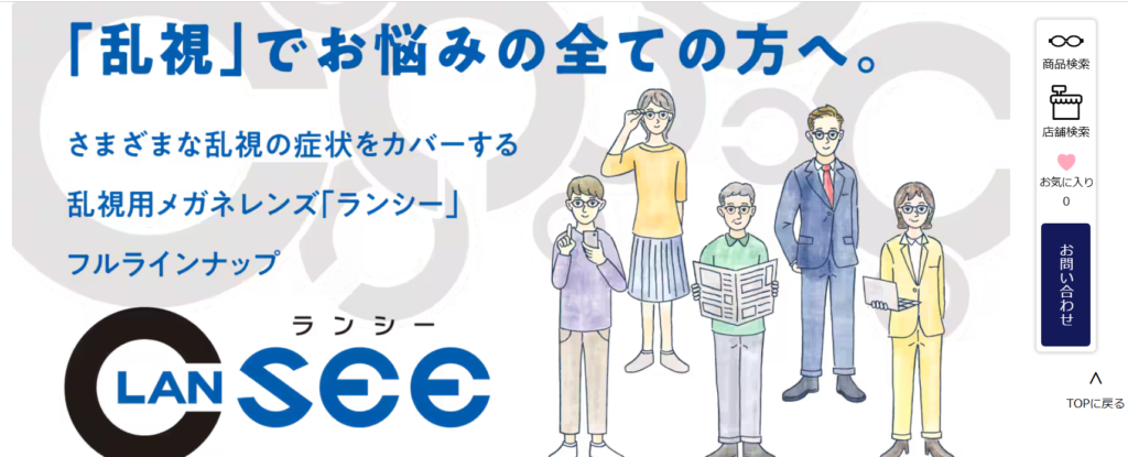 各チェーンは視力チェックやレンズ調整サービスも対応しているので、乱視度数に合わせて選びやすいのが特徴。