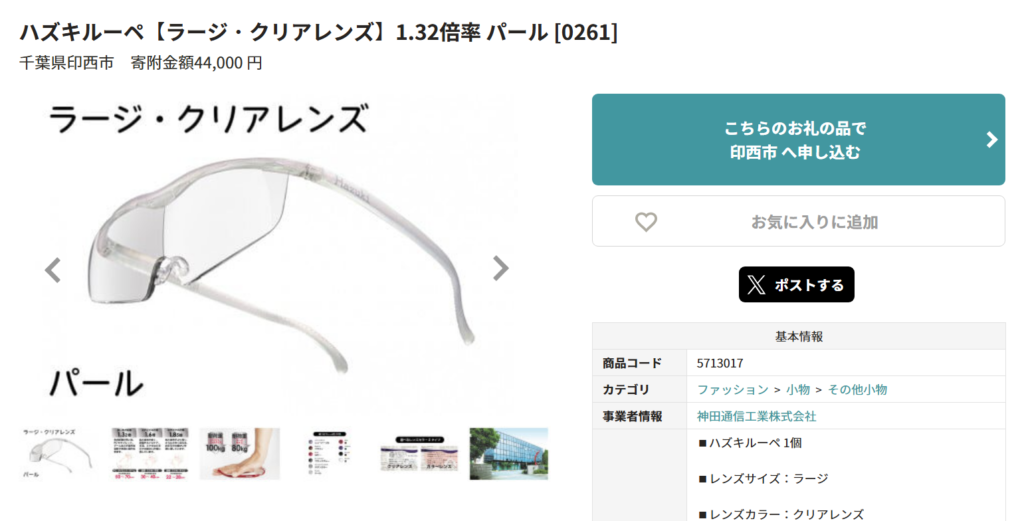 ただ、大丸を経由して行うふるさと納税の返礼品に、ハズキルーペがあることがわかりました。