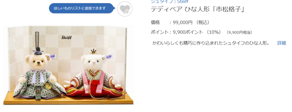 大きな段飾りを探している場合は他の販売店が候補になりますが、手軽に飾れる雛飾りを選びたいときにはチェックしておきたい売り場です。