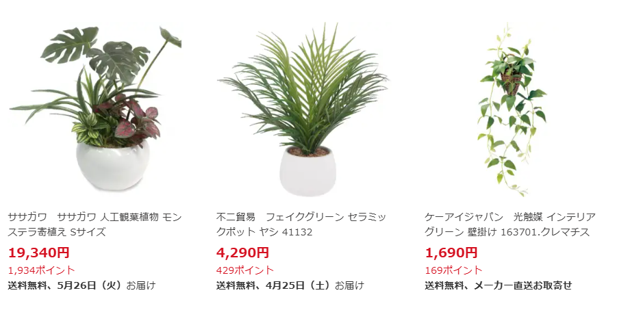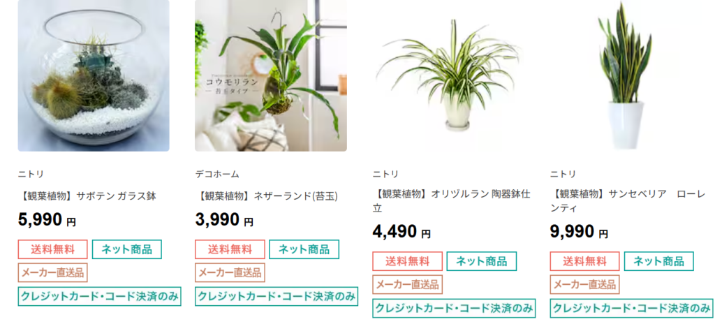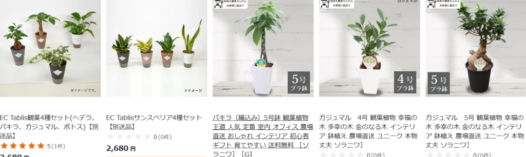 Yahoo!ショッピングにも、観葉植物が売っていました。