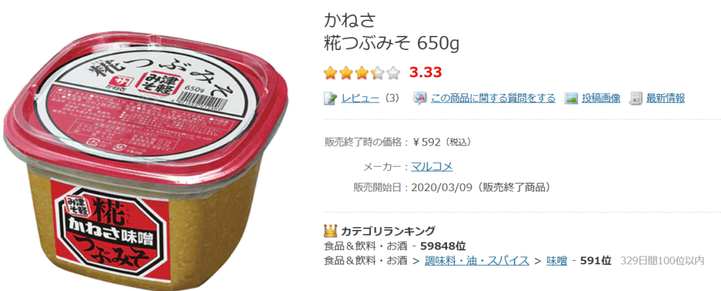 かねさ糀つぶみその口コミやレビュー・評価を調査