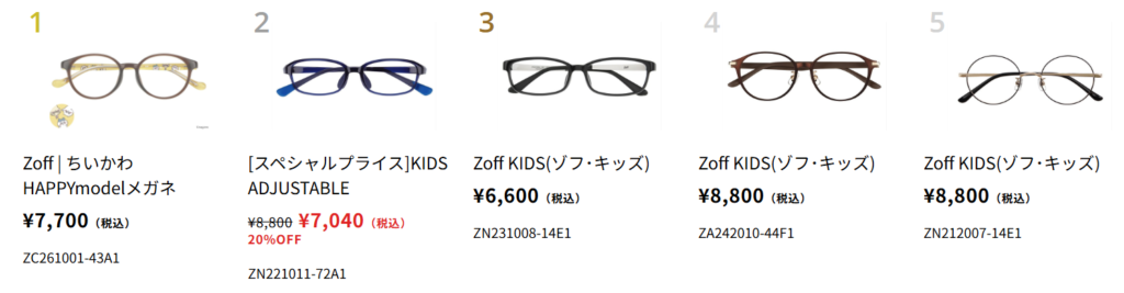 Zoffにも、子供用メガネが売っていました。