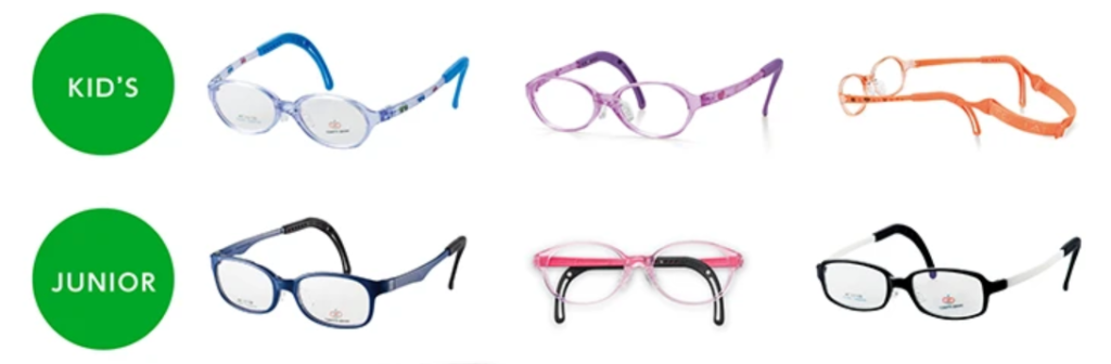キッズ向けのフレームや度付きメガネなどが多数掲載されており、サイズや年齢に合わせて選べます。