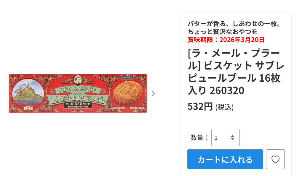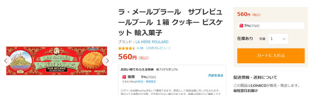 LOHACO(ロハコ)に、ラメールプラールクッキーが売っていました!
