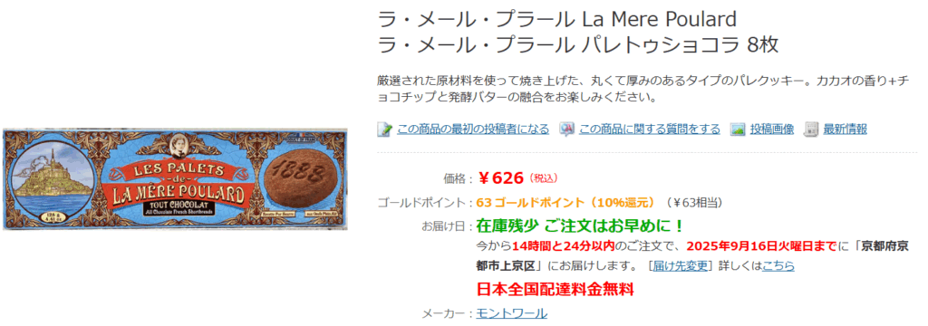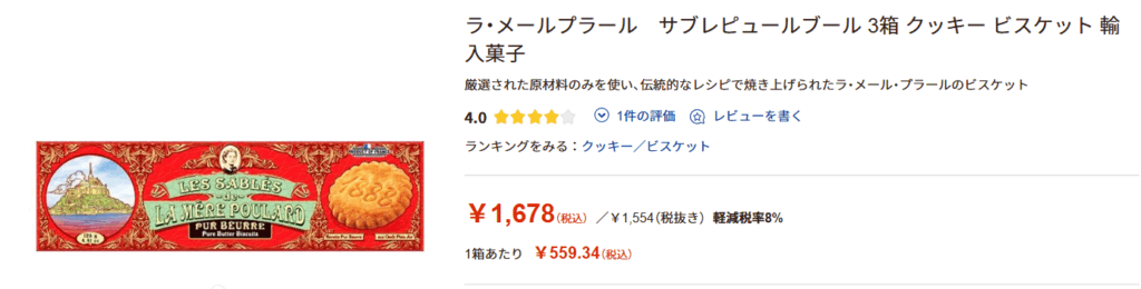 楽天市場にも、ラメールプラールクッキーが売っています。