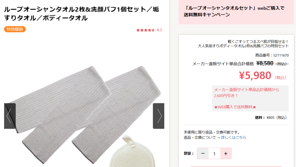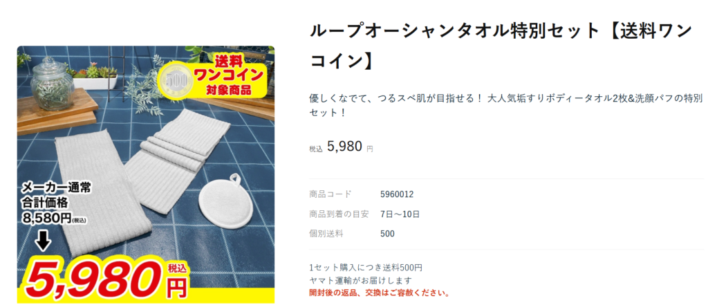 カンテレショッピングにも、ループオーシャンタオルが売っていました!