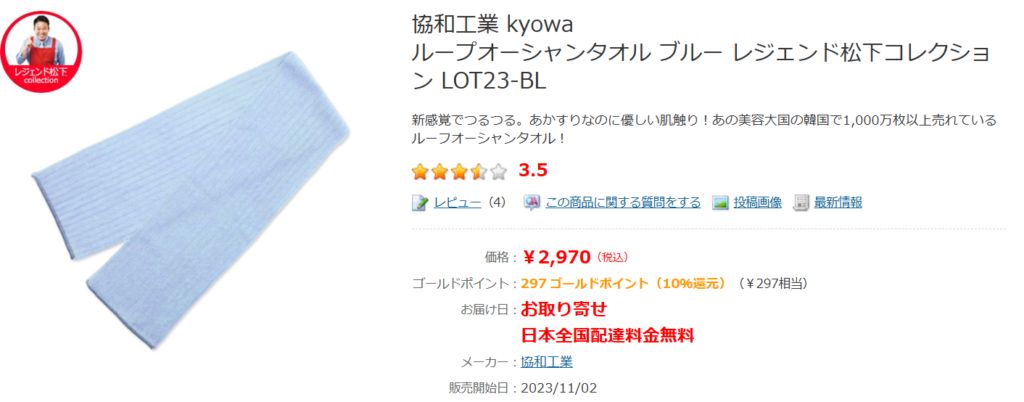Qoo10にも、ループオーシャンタオルが売っていました!