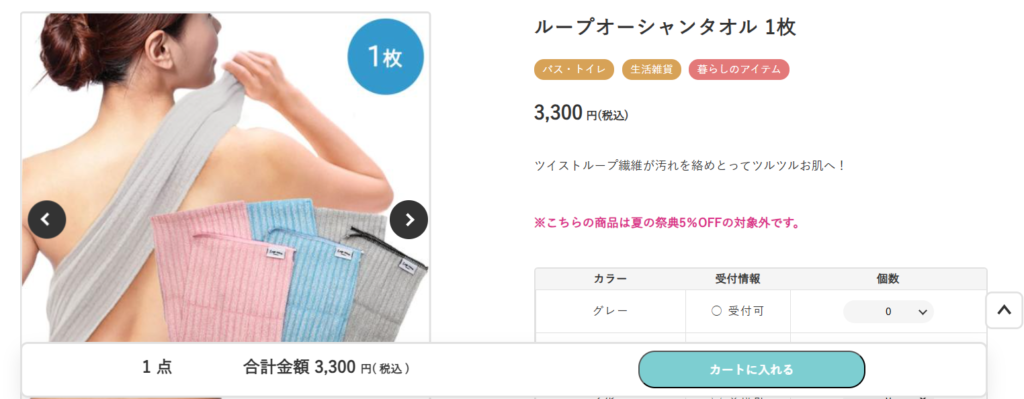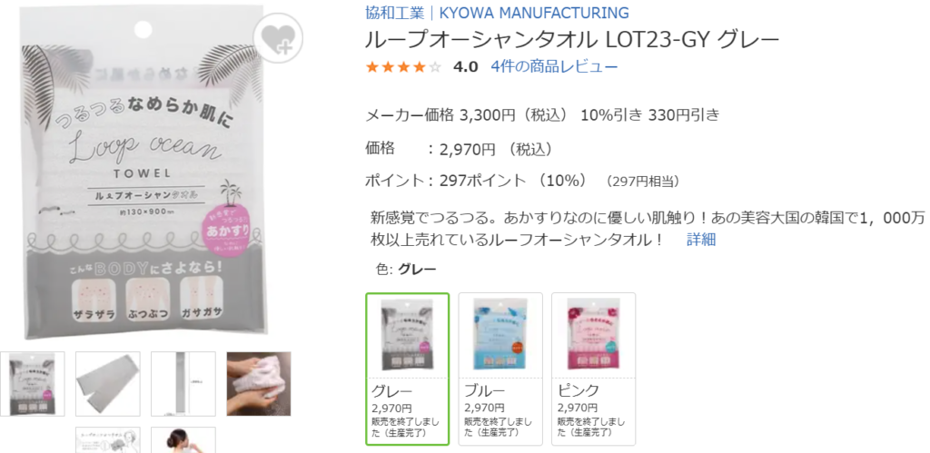 楽天市場にも、ループオーシャンタオルが売っていました!