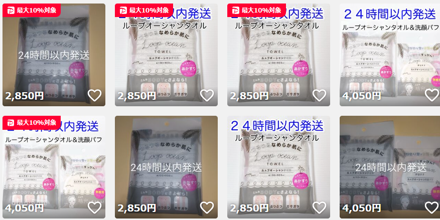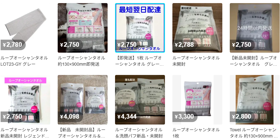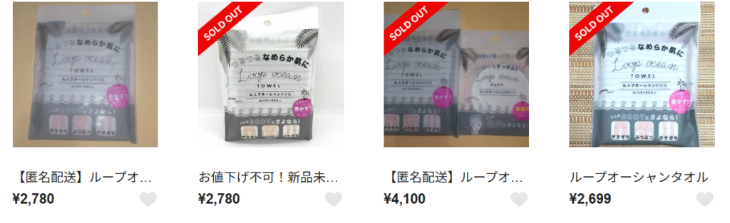 Yahoo!フリマにも、ループオーシャンタオルが売っています。