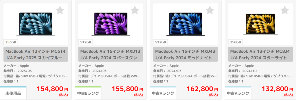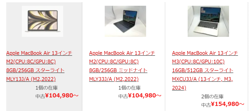 じゃんぱらにも、MacBook中古が売っていました。