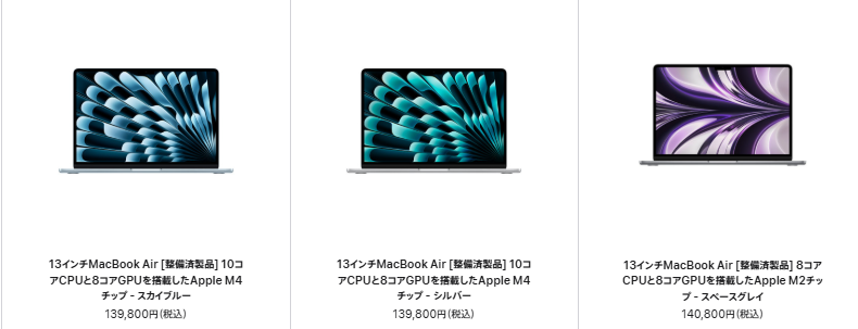 Appleにも、Apple認定整備済製品として、MacBook中古が売っていました!