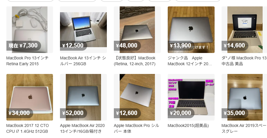 ヤフオクにも、Macbook中古が売っていました!