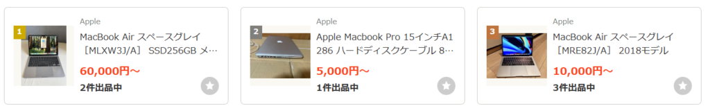 メルカリにも、MacBook中古が売っていました!