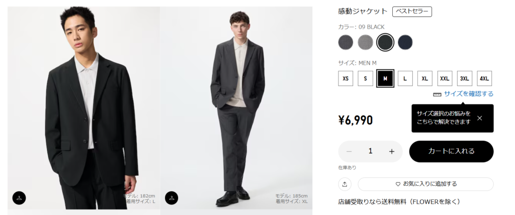 ユニクロにも、正式な喪服の取り扱いはありませんが、装飾の少ない黒のワンピースやジャケット、セットアップがそろっていました。
